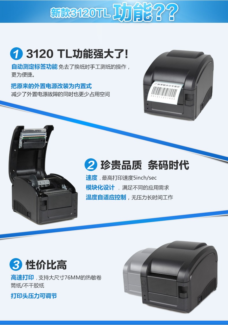 佳博(Gprinter) GP-3120TL热敏标签打印机 不干胶吊牌条码 TN升级版
